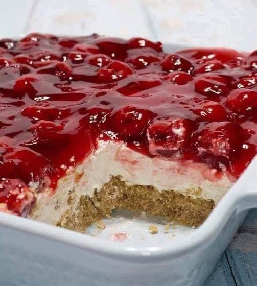 “This is the dessert Grandma brought to every church supper… creamy, dreamy, and topped with that beautiful cherry layer everyone remembers.”