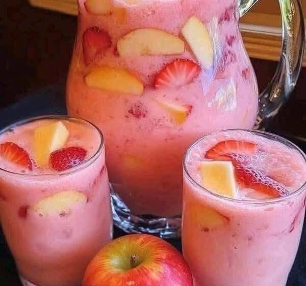 - In a large pitcher, whisk together strawberry juice, apple juice, pineapple juice, sugar, and vanilla until the sugar dissolves.