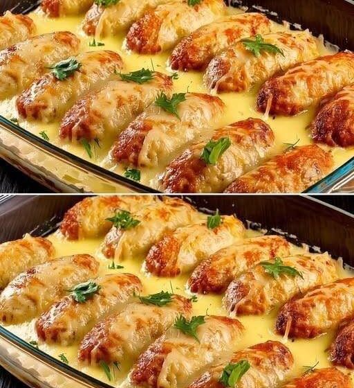 These tender cabbage rolls, filled with a savory meat and rice mixture, rest gently on a bed of slow-simmered vegetables and tomato sauce. It’s a comforting dish that tastes like home — rich, hearty, and perfect for everyday family dinners.