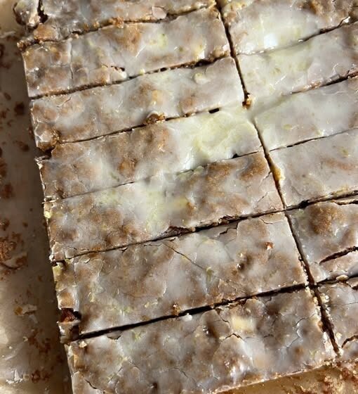 Whisk powdered sugar, milk (or orange juice), and vanilla into a smooth glaze. Pour over the warm bars so it sinks in and creates a soft, shiny finish.
