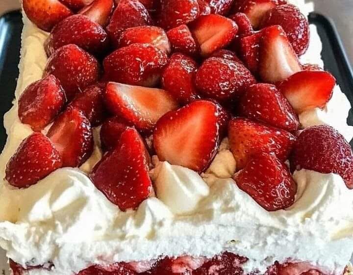 This classic no-bake dessert is the ultimate summer treat. Soft graham crackers, creamy vanilla filling, and sweet, juicy strawberries layer together to create a cool, refreshing cake that sets beautifully in the refrigerator. No oven, no fuss — just simple ingredients that turn into a crowd-pleasing dessert everyone loves.