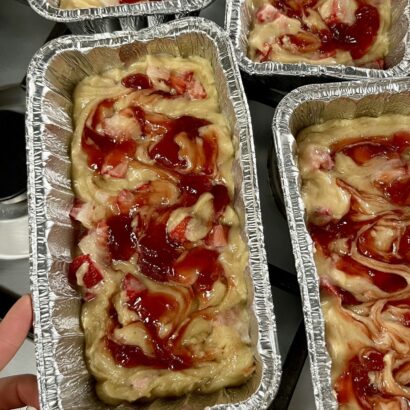 Divide the batter evenly between the prepared pans. Bake for 30-35 minutes, until a toothpick inserted in the center comes out clean or with just a few moist crumbs. Let cool in pans for 10 minutes, then turn out onto wire racks to cool completely.